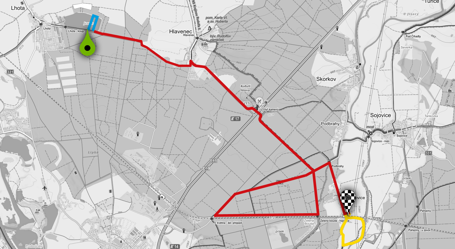 Na kole se tam dá dostat libovolně. Někdo jezdí z Černého mostu přes Radonice a Starou Boleslav. Někdo zase preferuje trasu z Letňan přes Kbely, Zeleneč, Lázně Toušeň a Káraný.